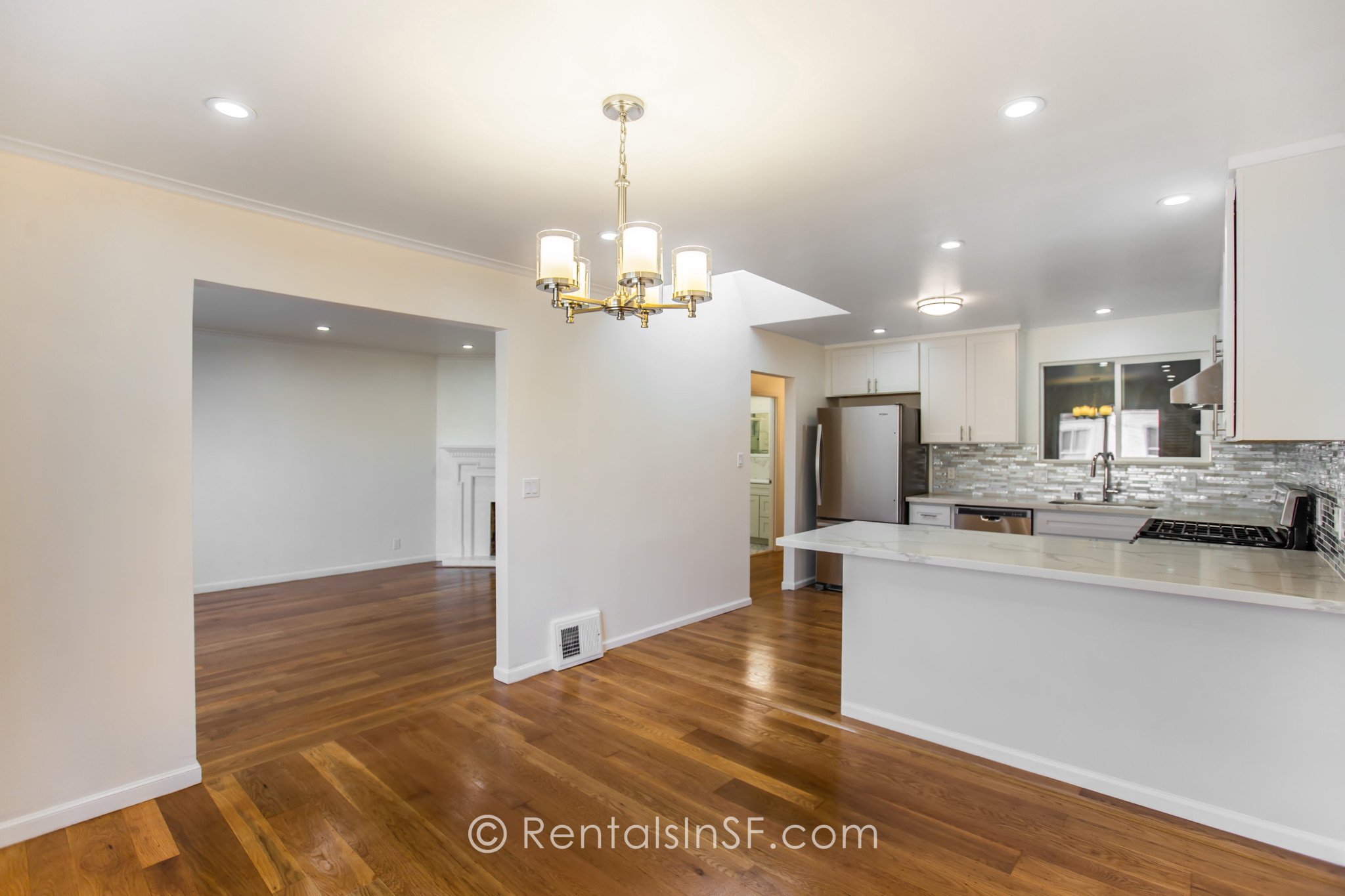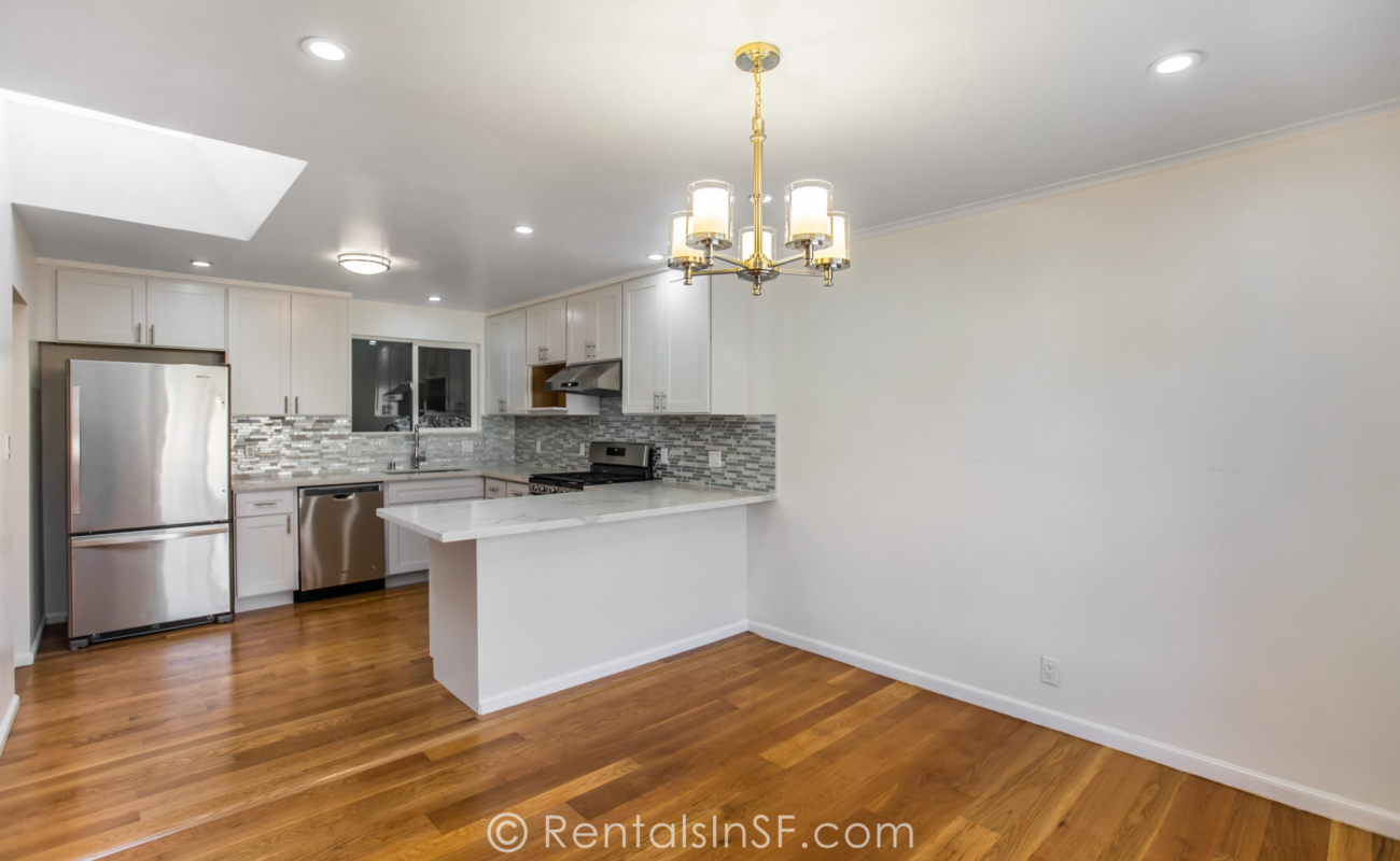 Spectacular Single Family Home in Central Sunset! This completely renovated home includes two bedrooms and one bathroom. Beautifully renovated kitchen with stainless steel appliances, quartz countertop, backsplash, white designer cabinets. The kitchen opens to the dining room. Large living room with decorative fireplace. Two spacious bedrooms located in the back of the home. Huge yard! Laundry in garage.
