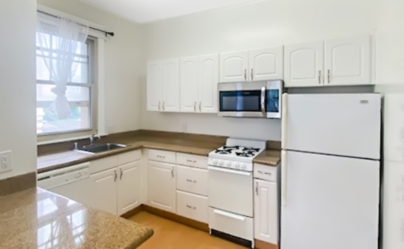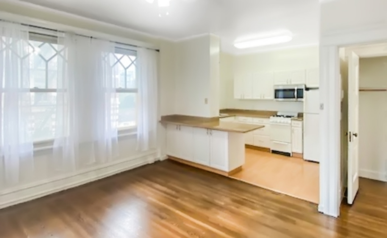 This is top floor one bedroom apartment with hardwood floors. There is a living room that is open to the kitchen. The kitchen is updated with granite counters, lots of cabinet space, and all appliances (fridge, gas range, microwave, dishwasher). One full bathroom.