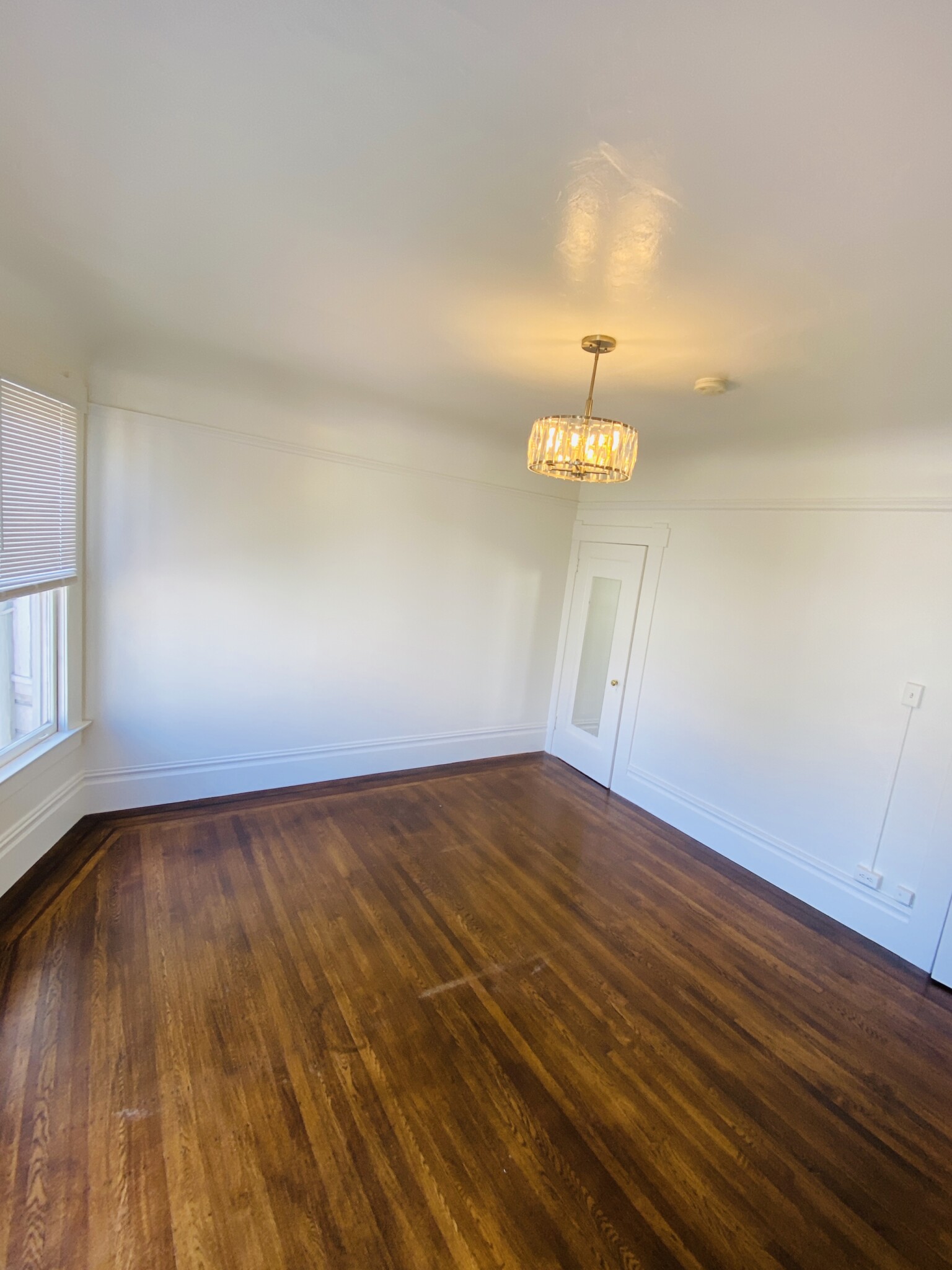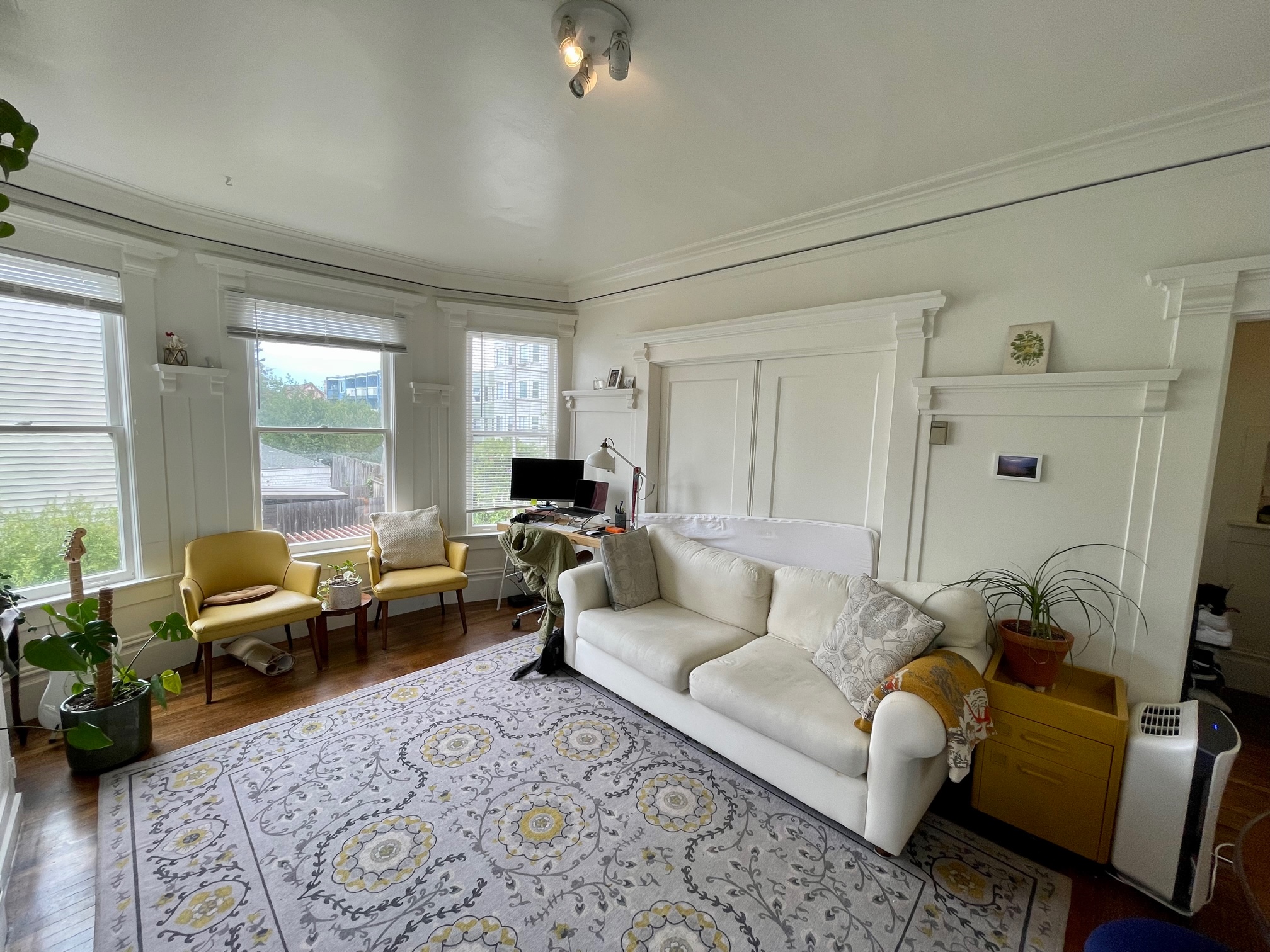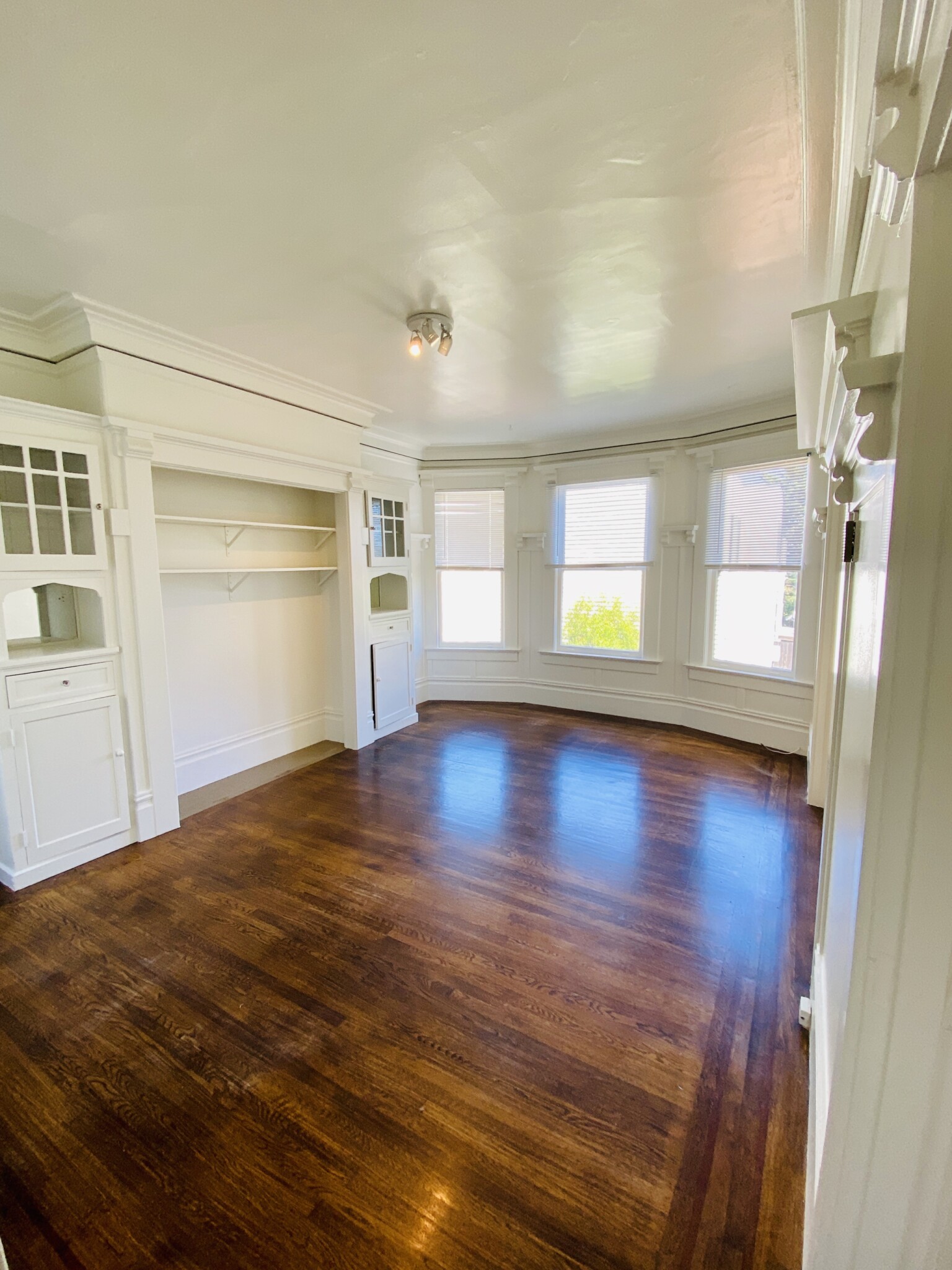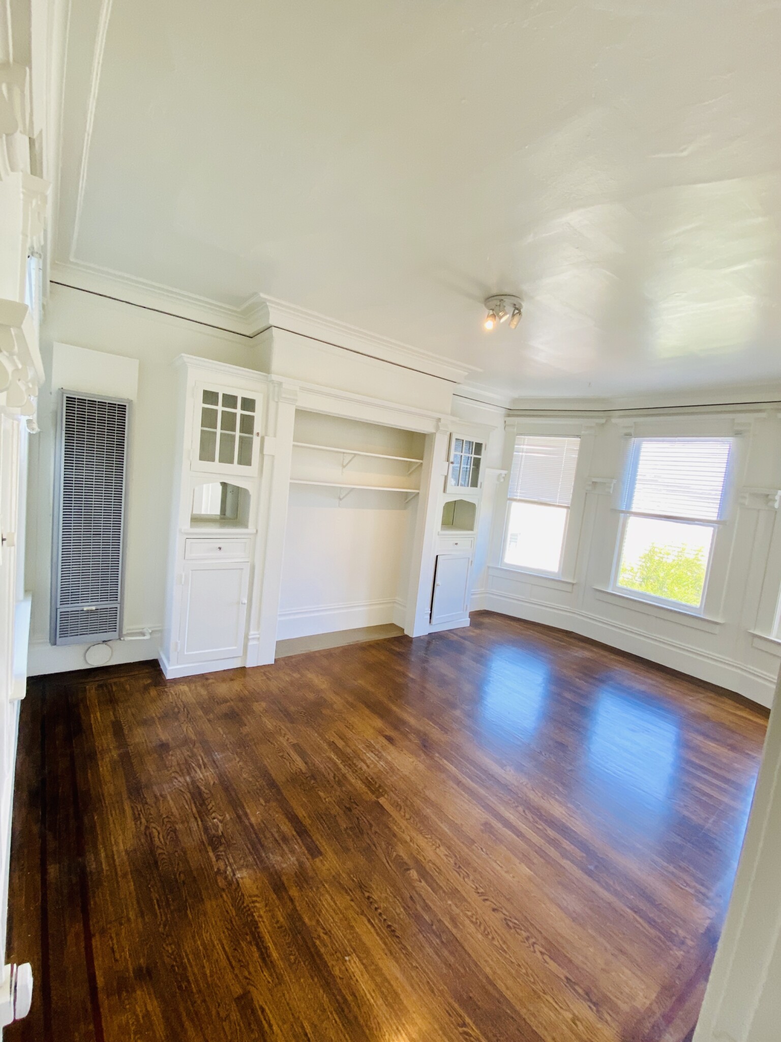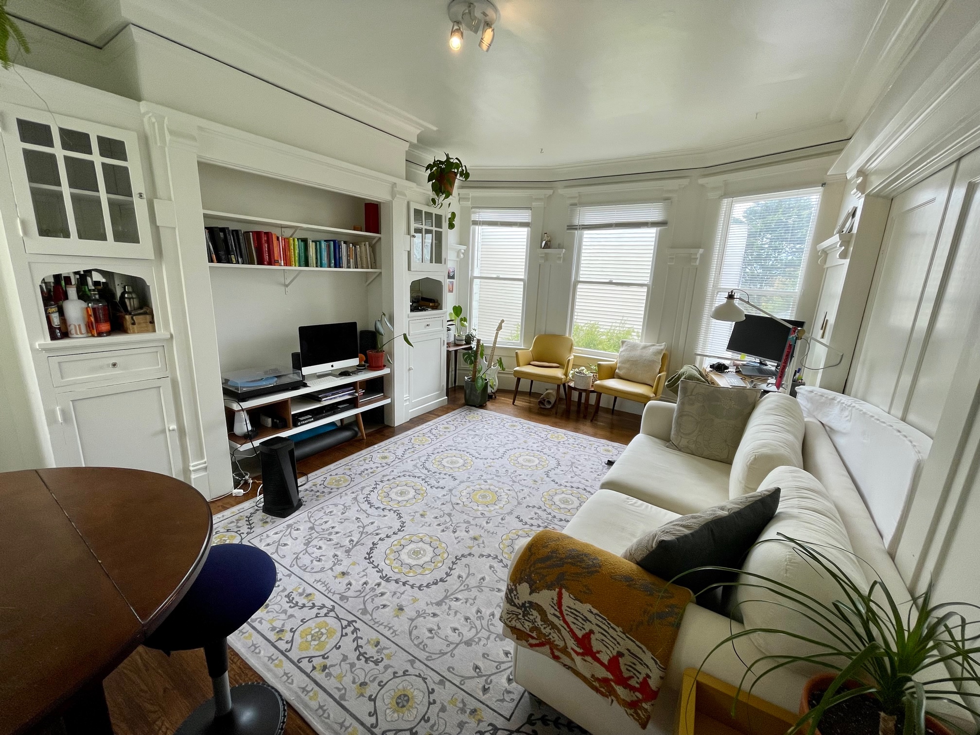 Charming and cozy one bedroom / 1 bath apartment in the Inner Sunset. Beautiful hardwood floors, period style details and large oversize windows create an airy and sunny feel. Pocket doors separate the Living Room and bedroom area. Large walk in bedroom closet, hall closet and linen closet provide good storage options. Shared laundry room on the first floor. Shared backyard / patio / garden with common seating.