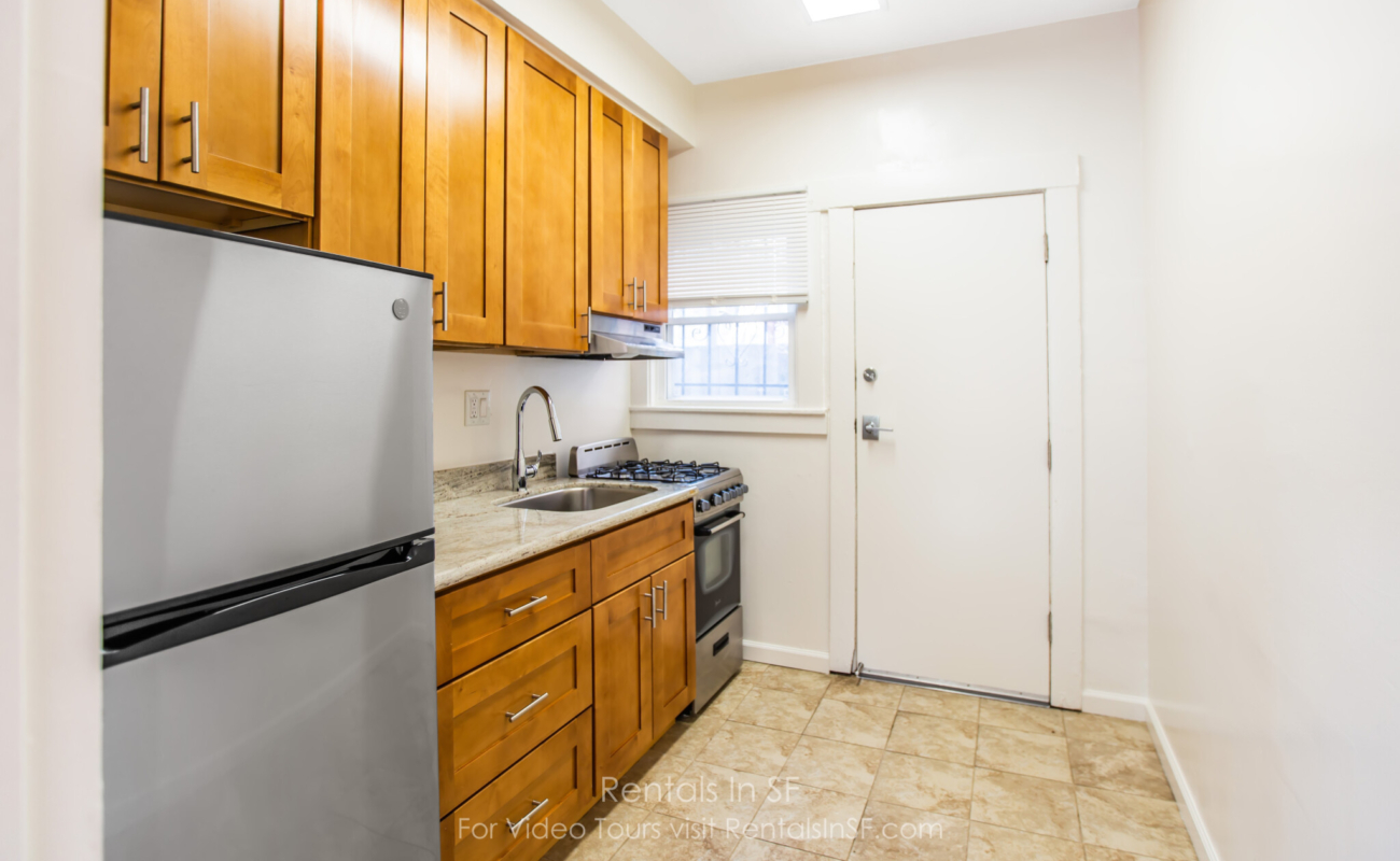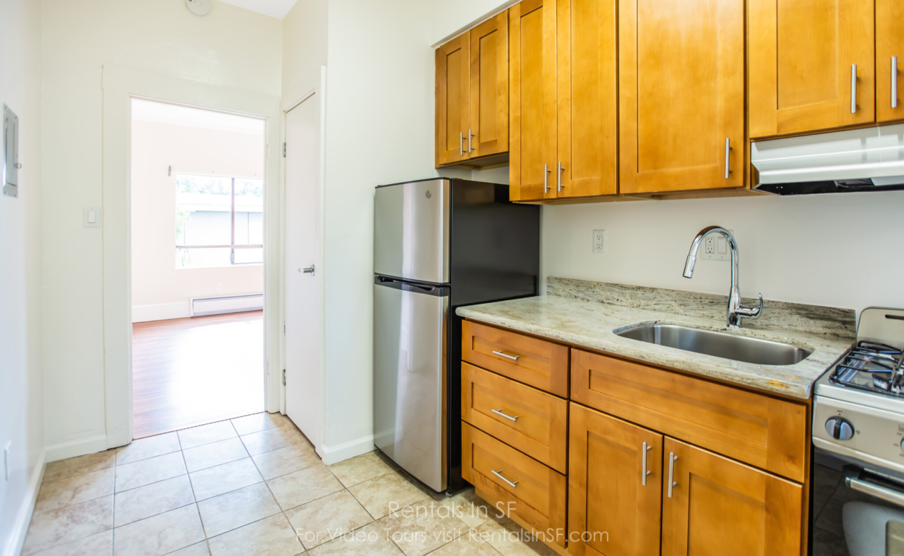 Spectacular Studio located East of Lake Merritt. Bright studio with separate kitchen. Kitchen includes a stainless steel refrigerator and gas stove, plenty of cabinet space and stone counter. Tub/shower combo in bathroom.
