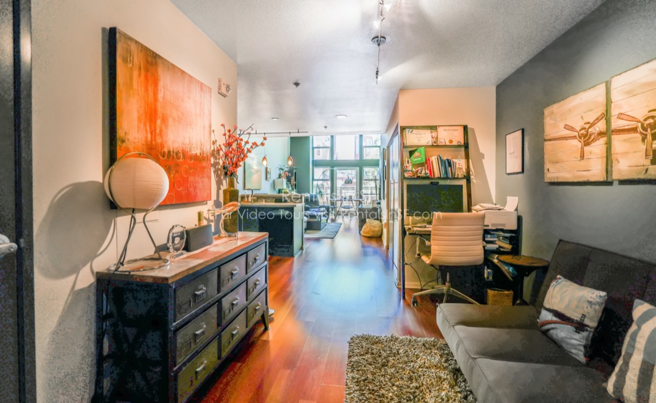 This rear, top floor loft condominium offers comfortable and convenient modern living! The entryway is spacious enough for a home office.