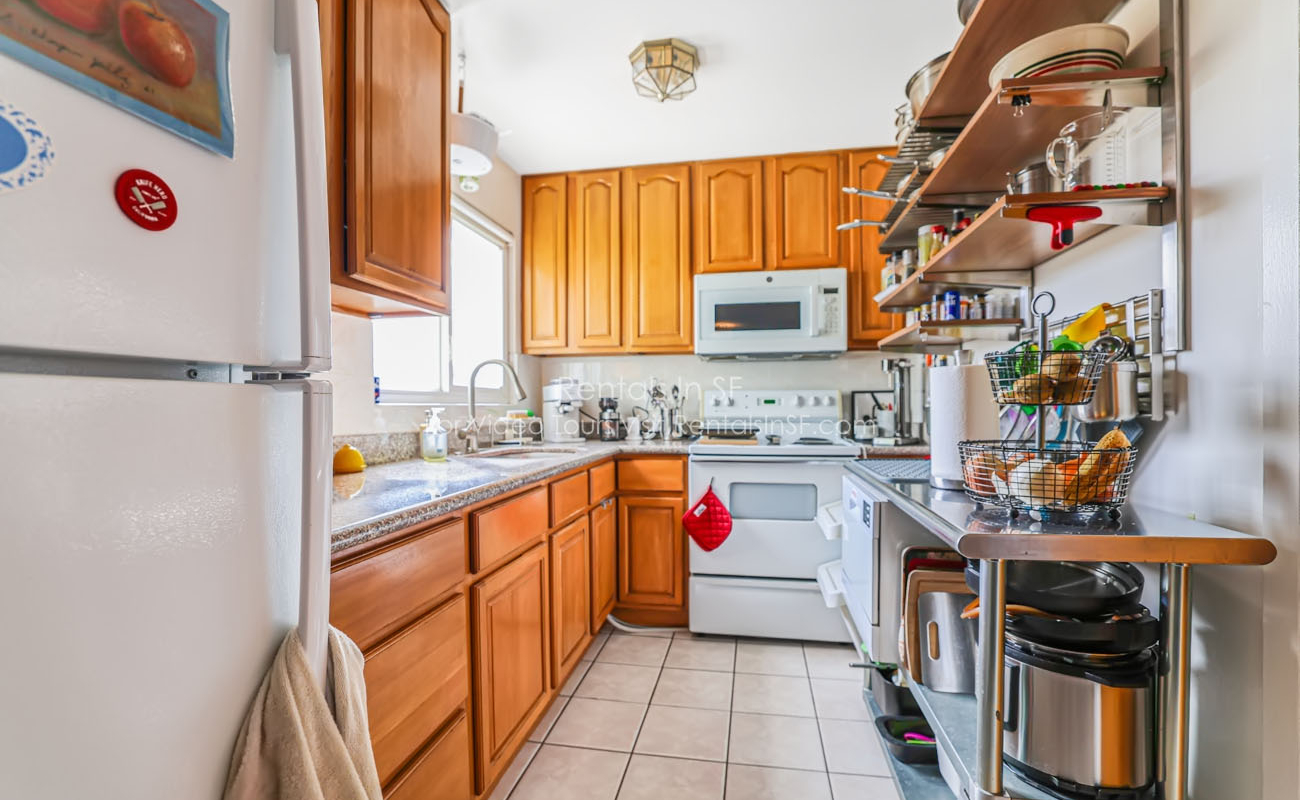 – Kitchen window faces East for morning Sun and Sutro Tower Views