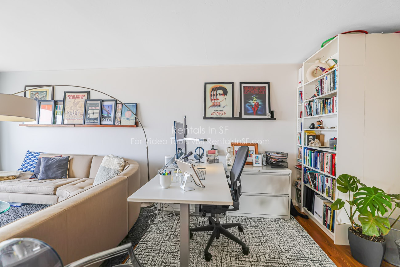 Well curated, top floor furnished one bedroom / one bathroom. Must remain furnished. Furniture includes Room and Board Reese sofa, Herman Miller Apron office chair, adjustable sit/stand desk, Loom & Leaf mattress on Crate and Barrel Queen bed frame. Gorgeous views of the Pacific Ocean as well as the Dutch windmill, Sutro Tower and Golden Gate Park.