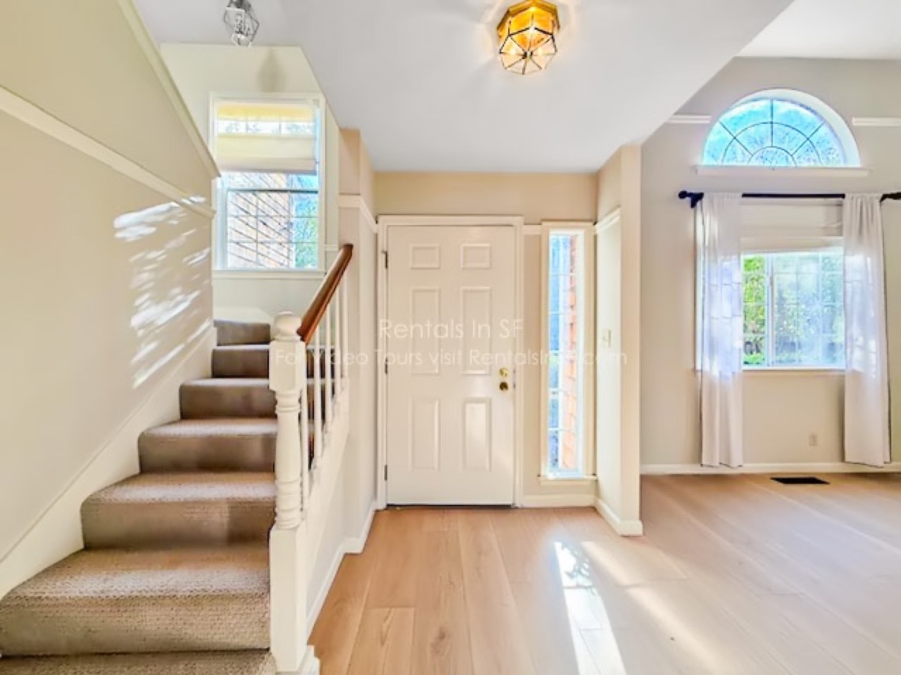 The living room is truly special, with its soaring two-story cathedral ceiling and adjoining dining area that opens onto a back deck—an ideal spot for morning coffee or an evening glass of wine. Just off the entry hallway, you’ll find a convenient and spacious coat closet and laundry room with private laundry, making everyday life that much easier.