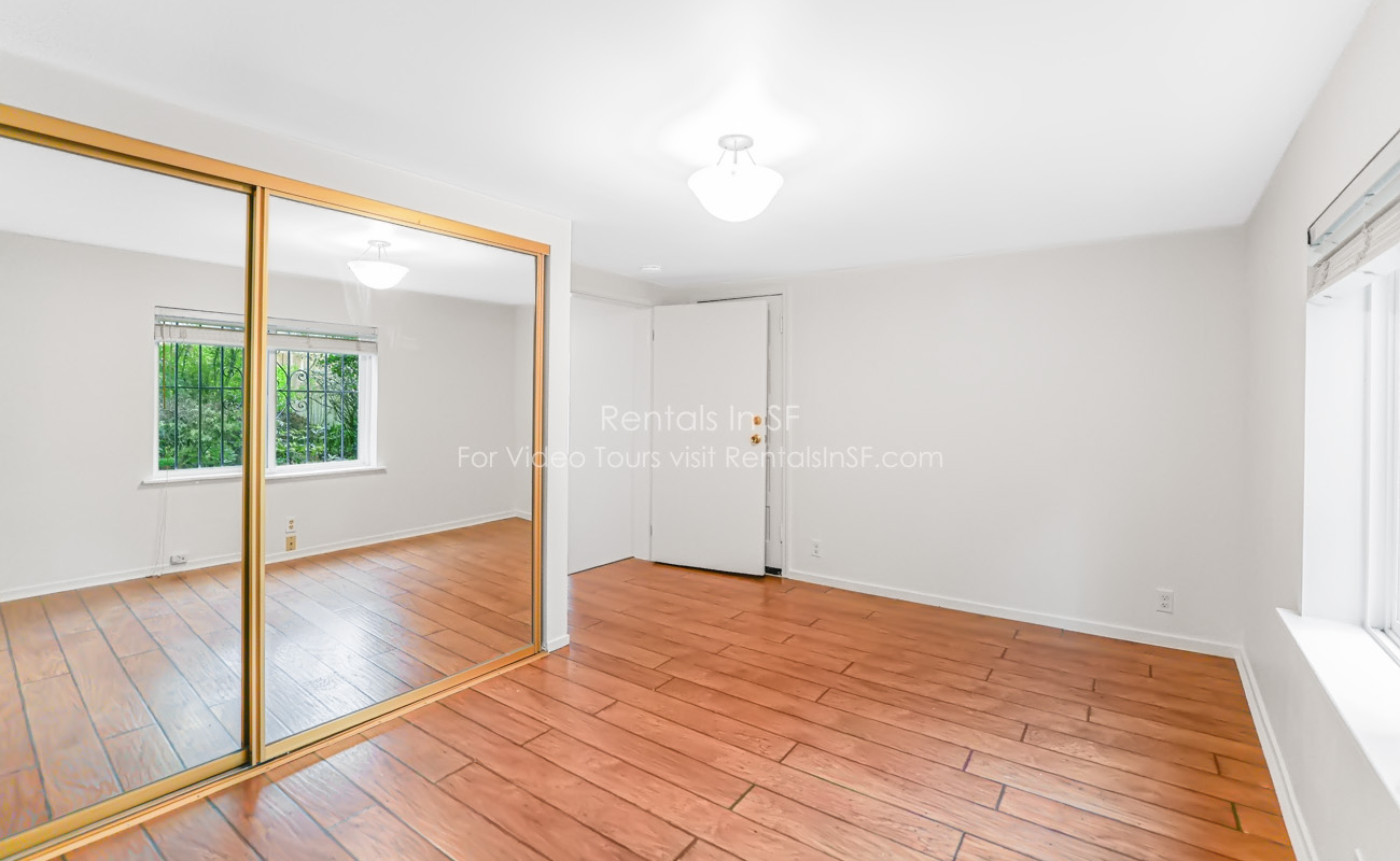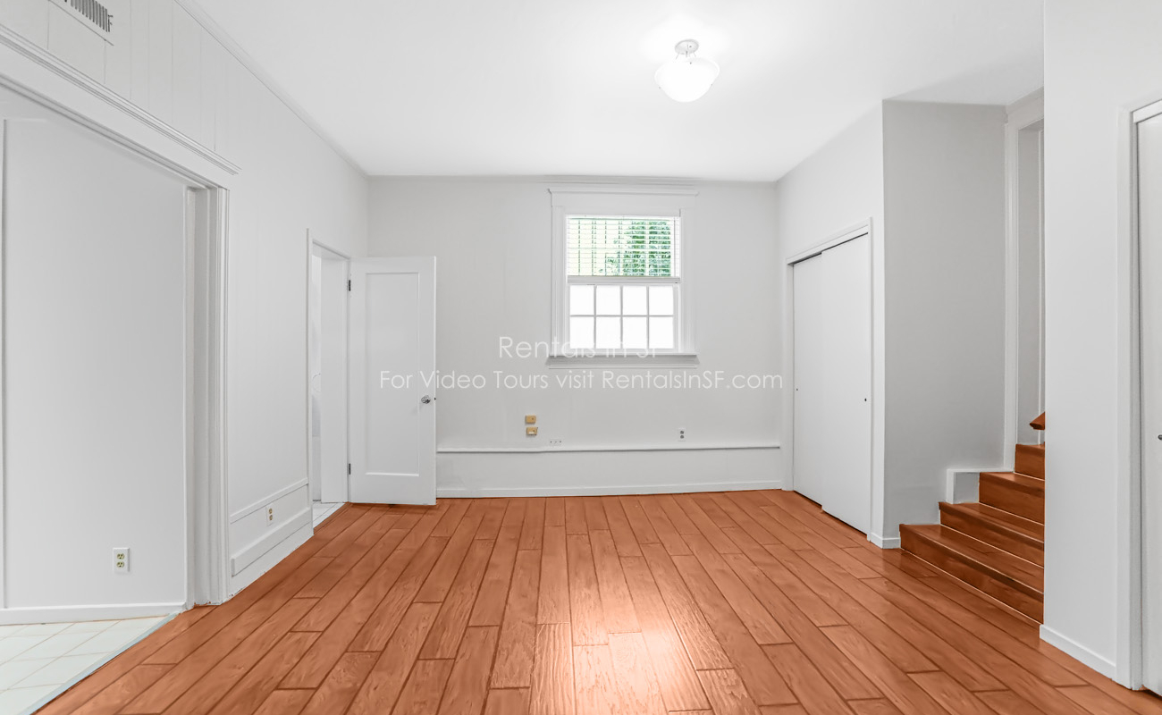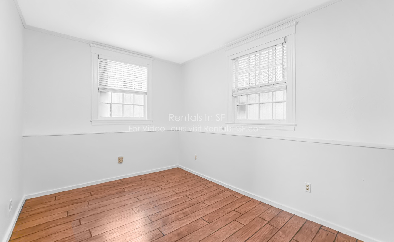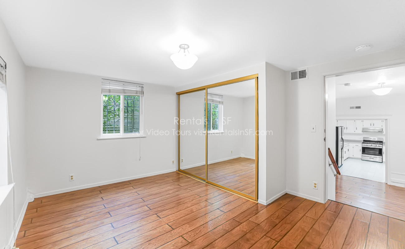 This spacious two-bedroom, one-bath garden apartment is tucked away at the rear of the building in a quiet cul-de-sac in the desirable Parkside district. Set behind a welcoming row of white lilies, the unit sits toward the back of the property, offering privacy and a peaceful living experience. The owner lives in the home above.