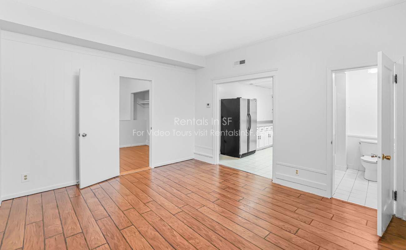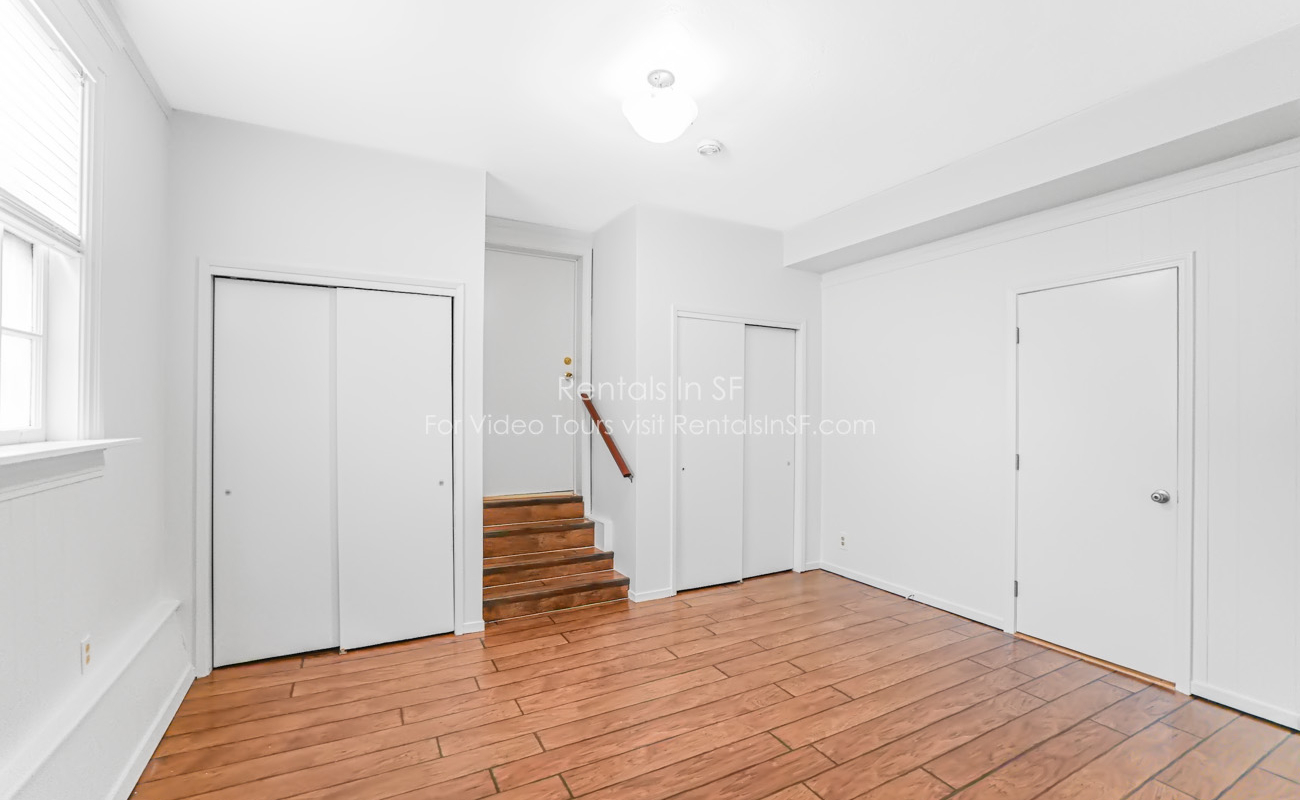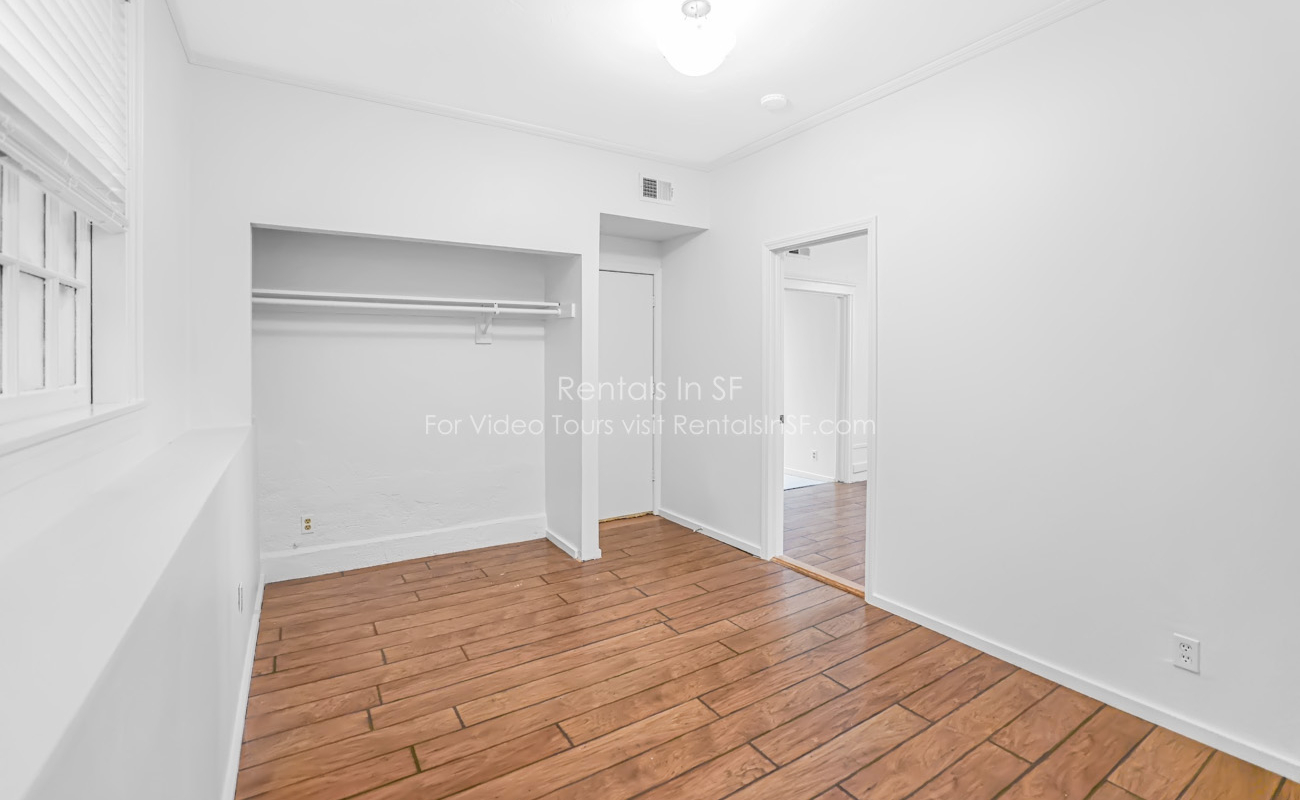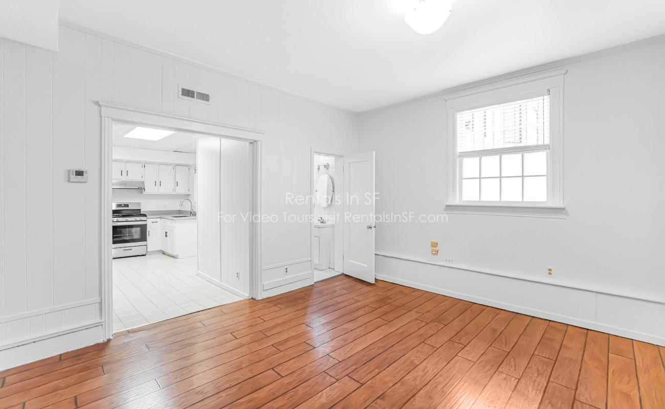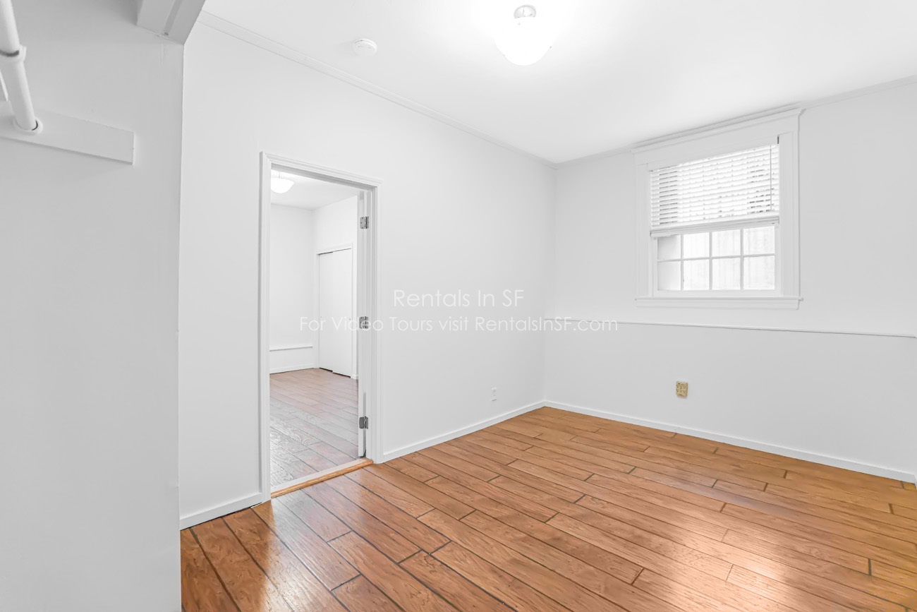 This spacious two-bedroom, one-bath garden apartment is tucked away at the rear of the building in a quiet cul-de-sac in the desirable Parkside district. Set behind a welcoming row of white lilies, the unit sits toward the back of the property, offering privacy and a peaceful living experience. The owner lives in the home above.