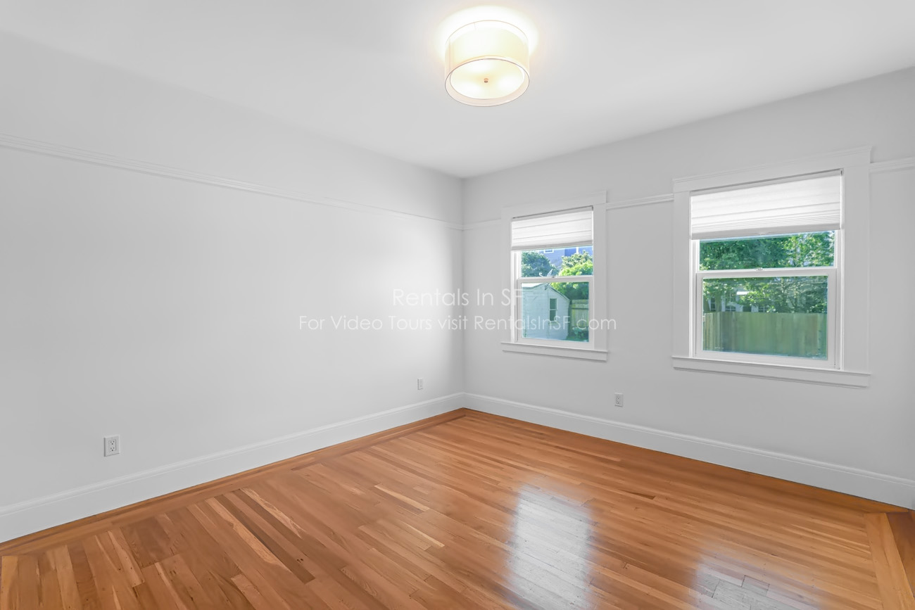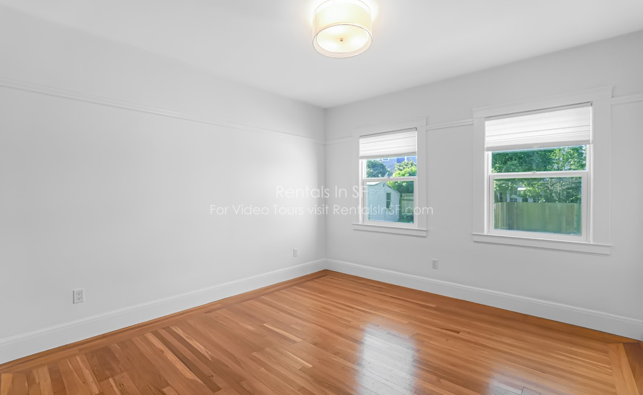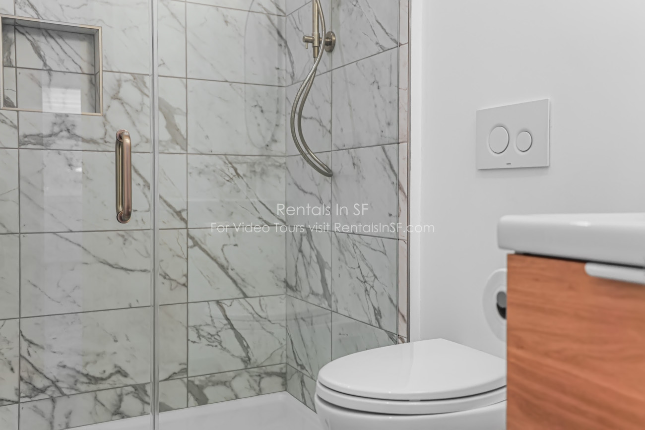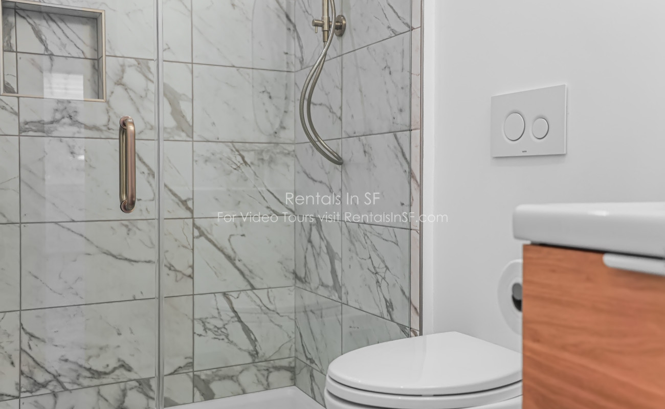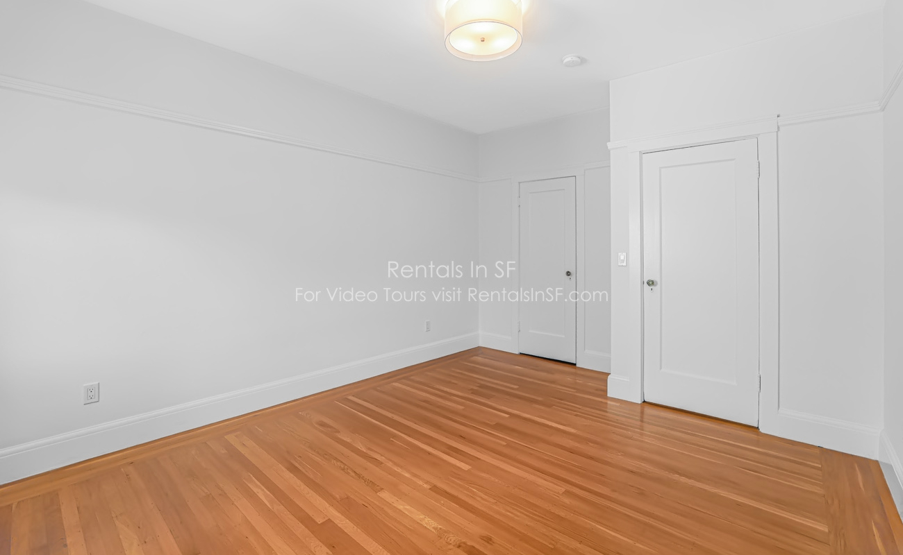 Full length 2 bedroom / 2 bathroom flat on a lovely, tree lined street in the Inner Richmond. This beautifully renovated unit features 2 spacious bedrooms, sunny living room, dining room and kitchen. The bedrooms are located in the back of the unit overlooking shared yard. Bedroom has en suite bathroom with walk in shower. The hallway bathroom has shower over tub combination. The modern kitchen has stainless steel refrigerator, dishwasher, gas oven range and quartz countertops. Great closet space in both bedrooms and large walk in hall closet. Shared laundry in the building.
