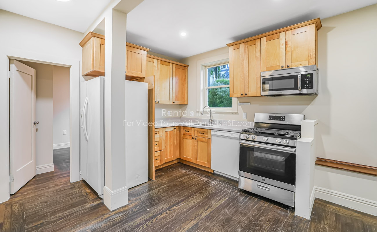 Inside you’ll find beautiful hardwood floors throughout and an open kitchen–living layout. The kitchen features a gas range, dishwasher, refrigerator, and a kitchen creating a warm and open space.