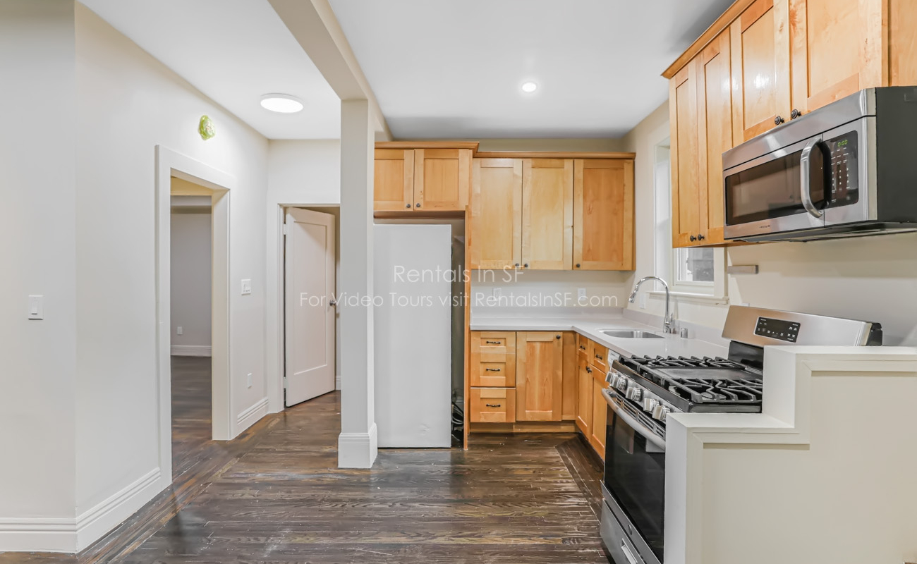 Tucked away on a peaceful, tree-lined street in desirable Bernal Heights, this 2-bedroom (small bedrooms, see dimensions below) 1bath top floor unit offers a serene retreat surrounded by gardens.