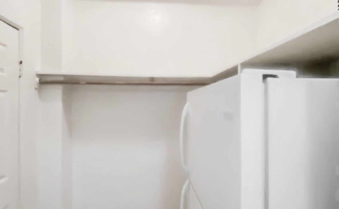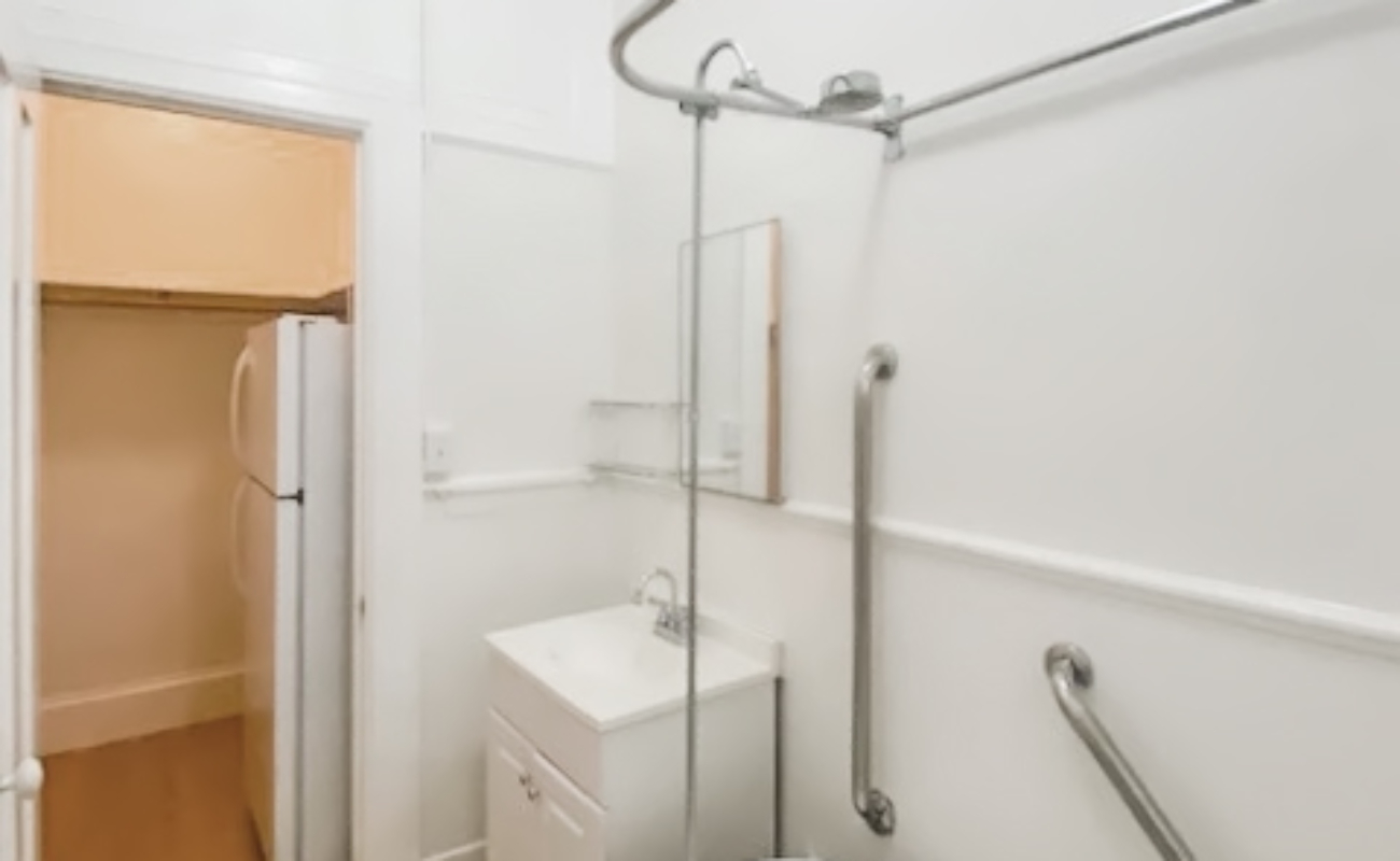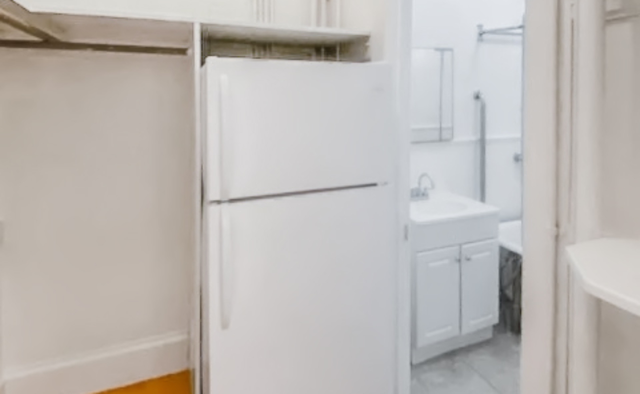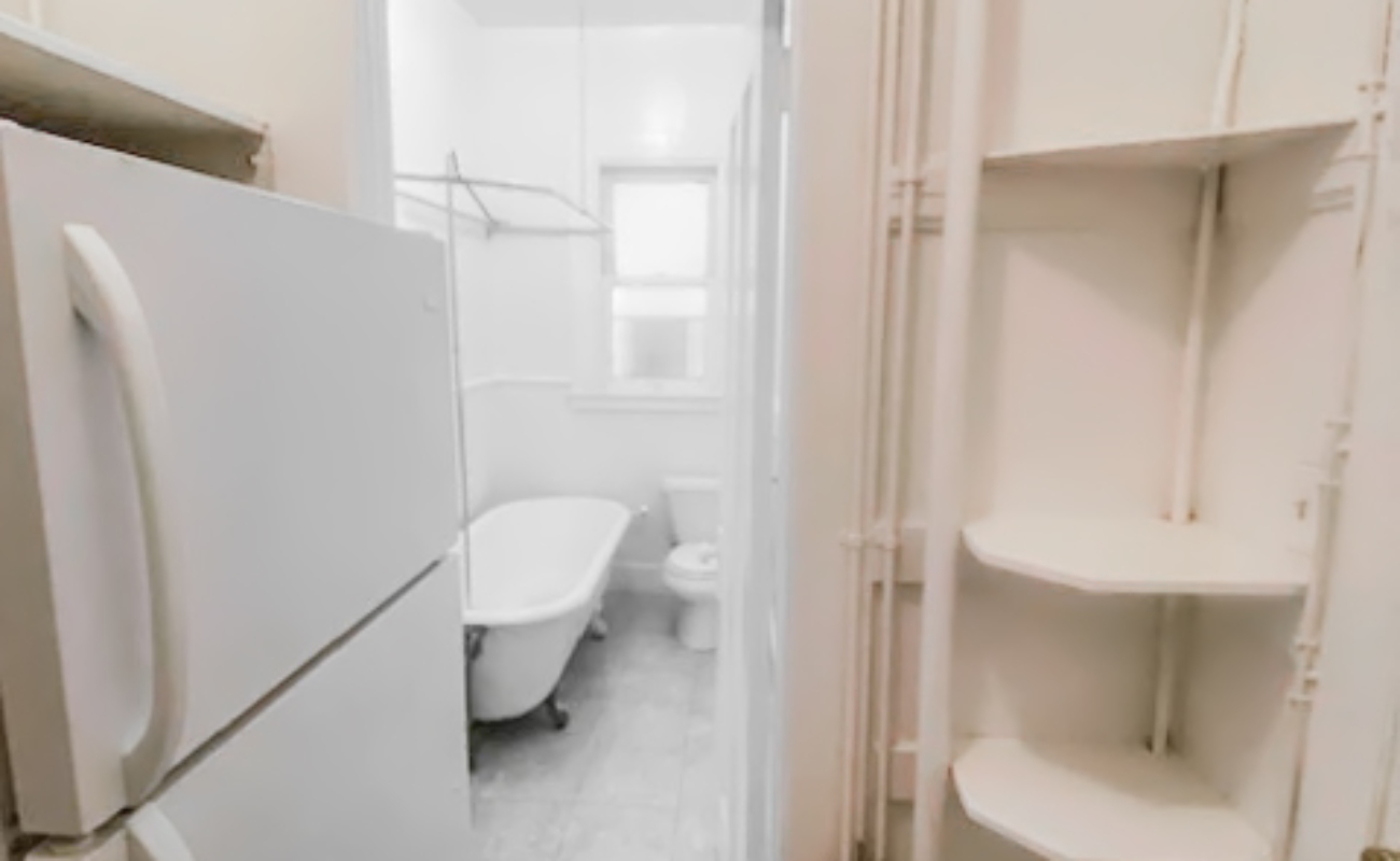 This is an efficiency studio apartment with a kitchenette (fridge, two burner gas cook top, marble counter and wood cabinets) and one full bath. Unit is small (will fit a full sized bed best) but has classic Edwardian style. One big walk through closet. Hardwood floors. Corner unit!